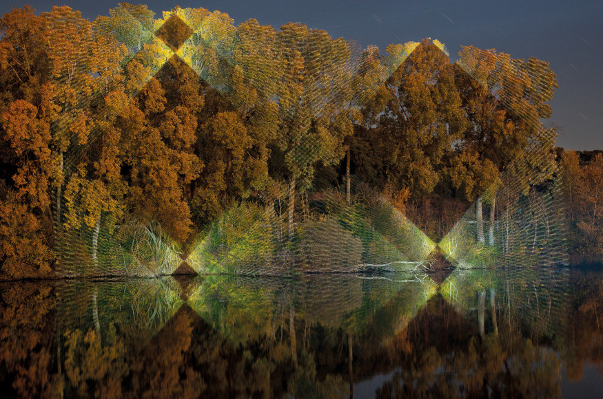 Javier Riera, born 1964 in Avilés, Asturias, is an installation artist who works with light projections to create ephemeral and breathtaking works. Riera designs the light projections himself, mainly working with geometric shapes that give the landscape a sculptural quality. For Riera, “Everything that happens in the landscape could be described and explained in terms of mathematics, physics and geometry, just the same as in the aspects of invisible but quantifiable energy.”