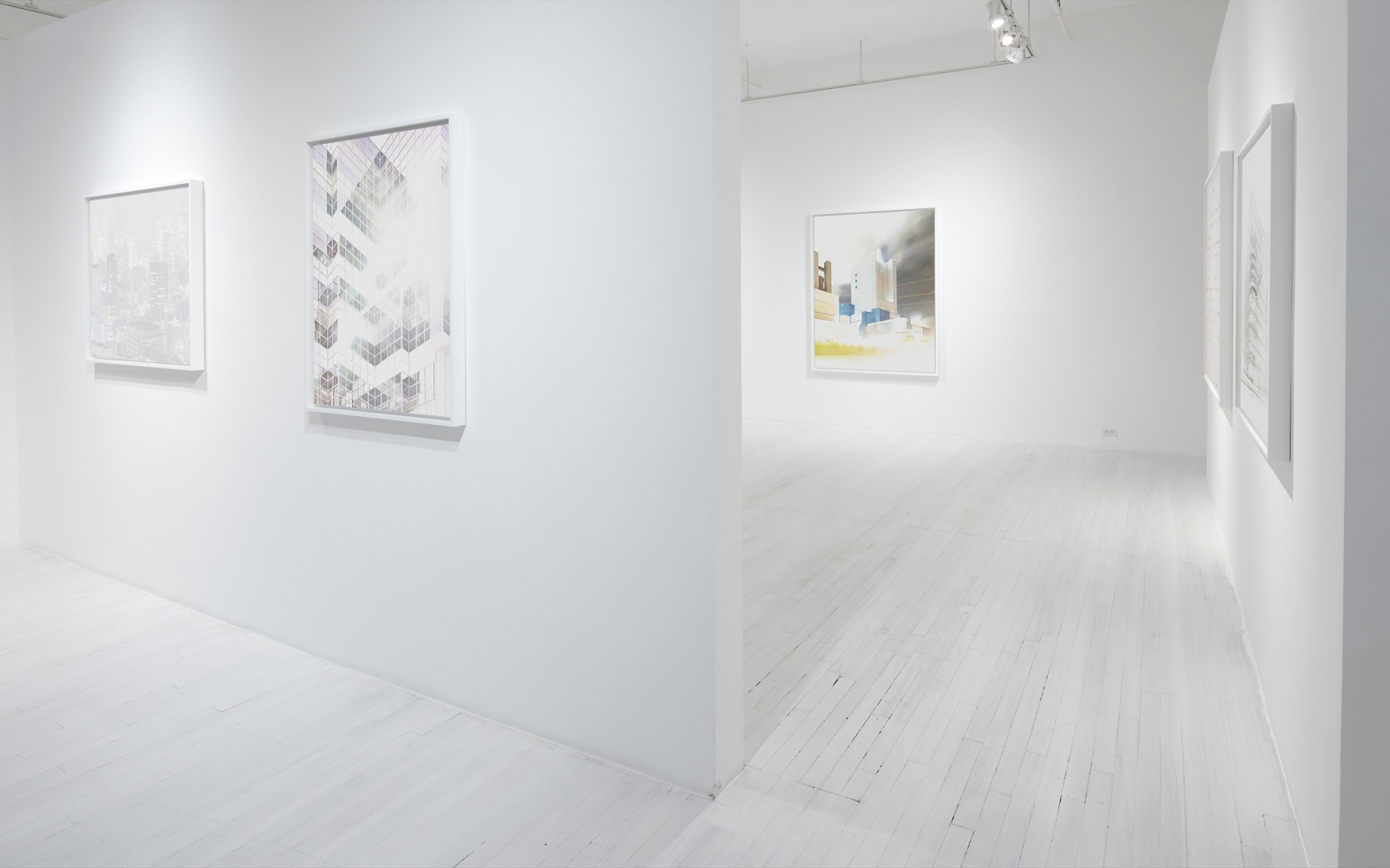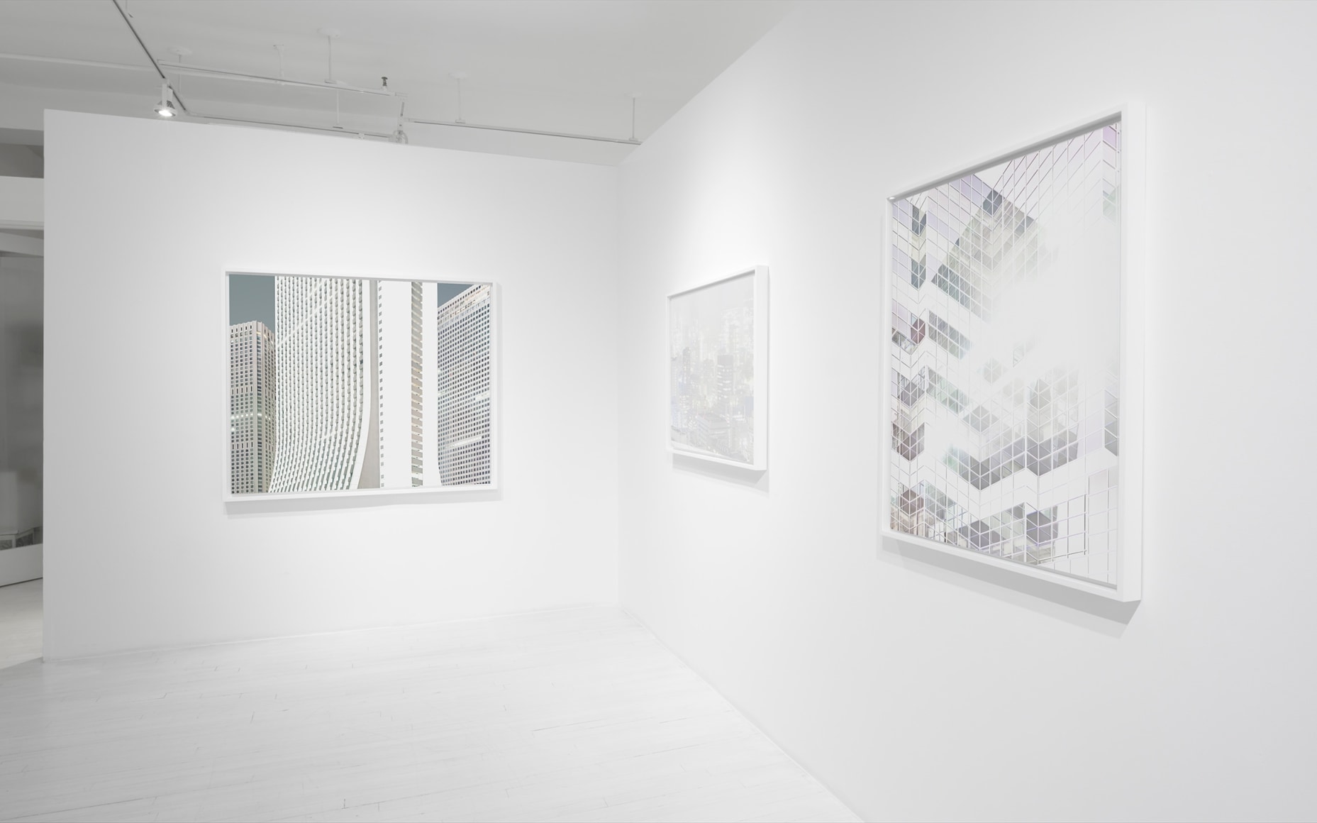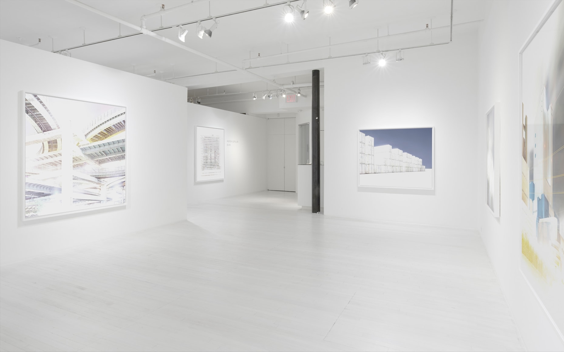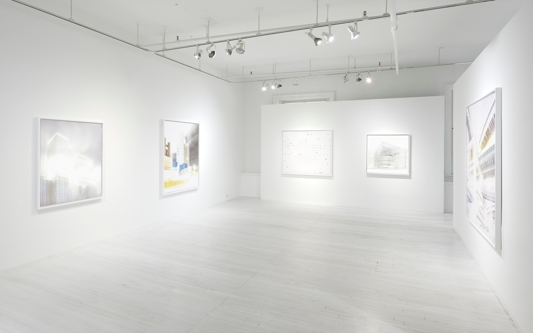 The works from the space uses the artificial lighting from our towns and cities and turns them into an ephemeral wonderland. Excessively overexposed photographs of building façades, motorway intersections, container terminals and refineries reveal vast faded areas. The photographs create tension between urban reality and its potential chaos leaving the possibility to envision a strange and overthrown world.