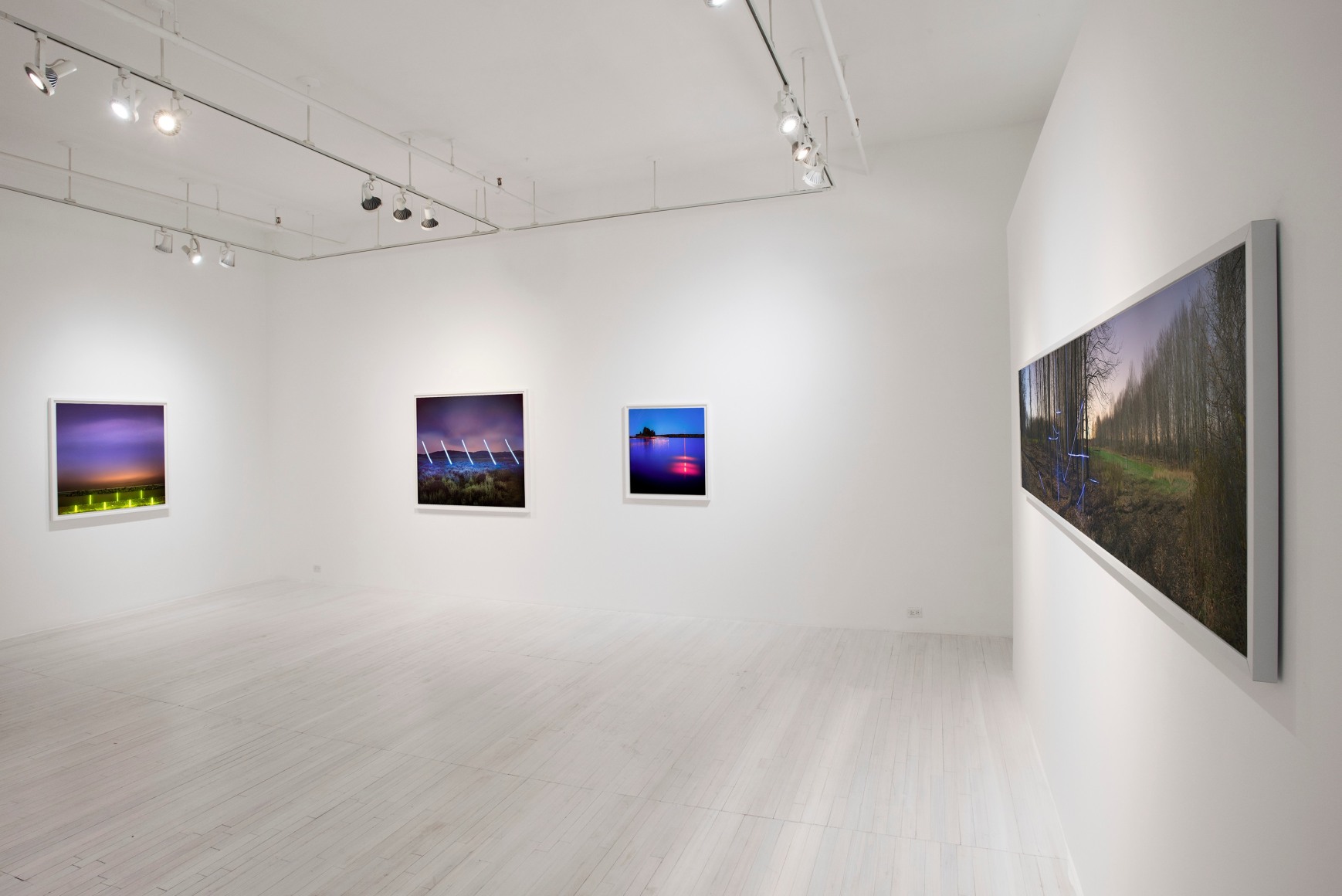 Underwood marks the landscape with LED lights, luminescent substances and other physical processes, utilizing lustrous color and working with shapes, lines and light to point to the immutable traces that human interventions leave behind. By staging a visual disruption in an otherwise familiar setting, Underwood seeks to reveal the unseen potential instilled in the landscape. As a result of the interplay of the natural and unnatural, he creates strikingly beautiful, otherworldly visuals enhancing awareness of environmental issues.