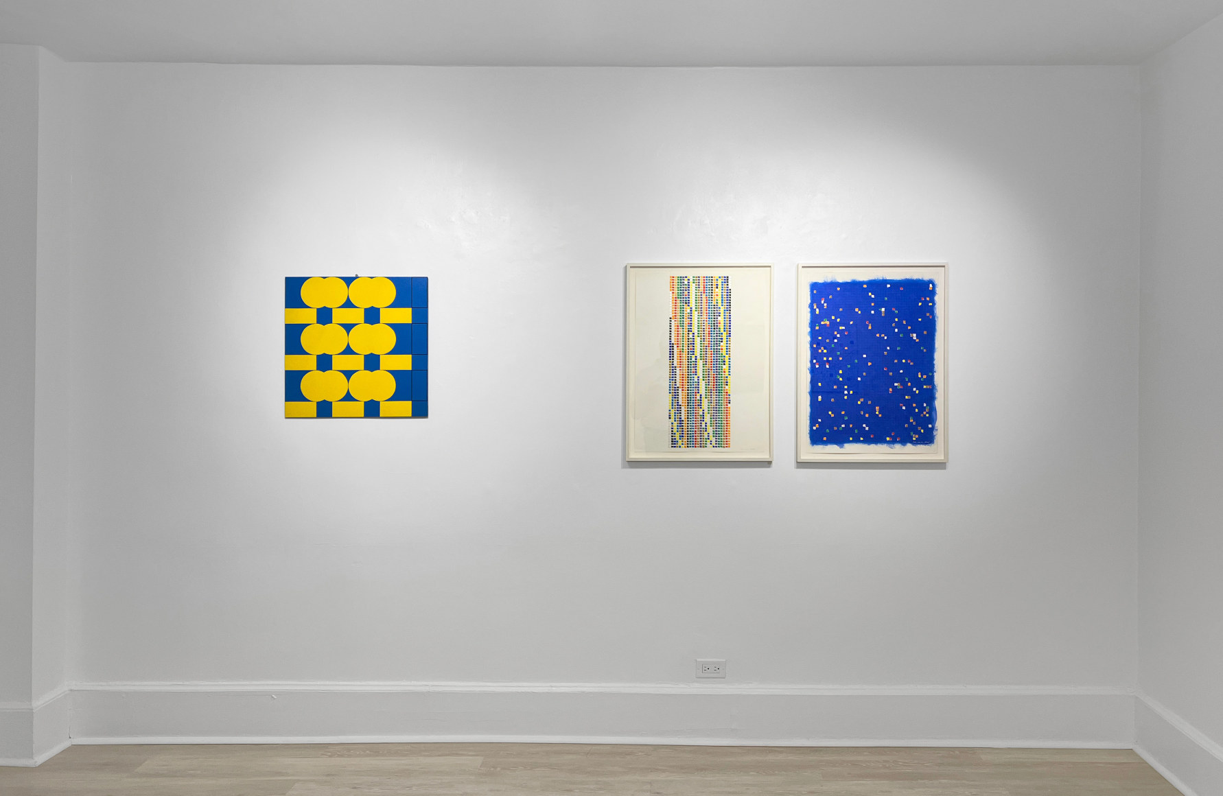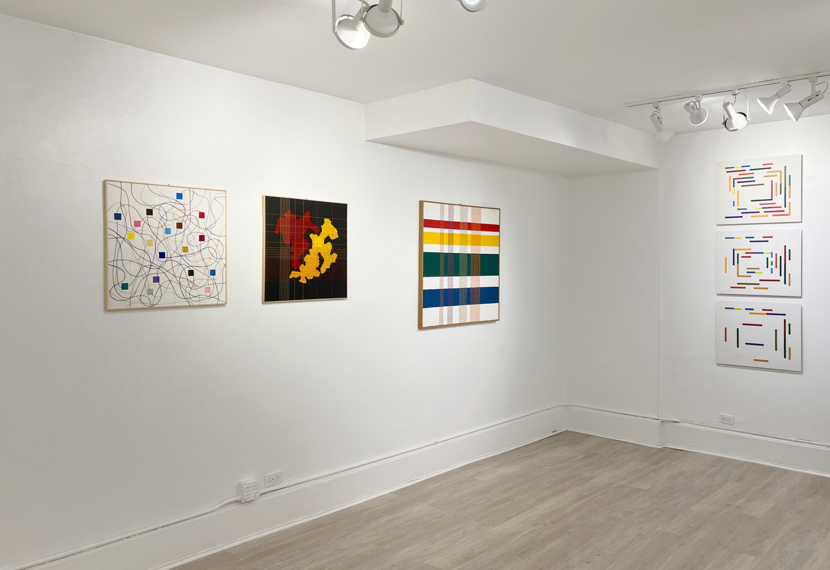 Most prominent in his paintings, Chiavacci explores the experimentation of the binary logic. The idea of two-dimensionality is examined and occasionally extended within three-dimensional space, such as in piece GF0572 (1984) where the occurrences of three-dimensionality find their dissolution. Moreover, the juxtaposition of materials,threads and colors, all of them primary, despite the diversity of their function, have the same importance. These elements taken separately or in their entirety coexist according to pre-determinated rules and arithmetic equations. Each work appears as a programmed experience.