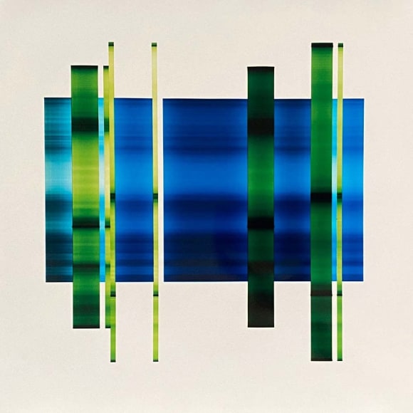 Karl Martin Holzhäuser, b. 1944 in Germany, is one of the earliest champions of Concrete Photography. Today, Holzhäuser has returned to the roots of his chosen artistic medium, creating a new genre in the field of cameraless photography that combines the stringency of premeditated instructions with elements of calculated chance. Calling this work “Lichtmalerei” or “painting with light,” Holzhäuser works completely in the dark, following a predevised “score” of the movement of light from memory, and allowing for extemporaneous adjustments by hand.